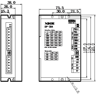 DP-304:脈沖控制信號接24V;DP-304-L:脈沖控制信號接5V。