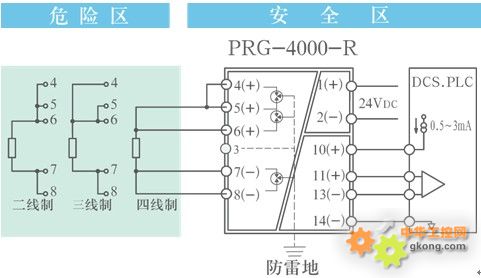 PRG-4000-R熱電阻隔離式安全柵具有本安輸入回路的單通道安全柵,可把來自危險區二/三/四線制熱電阻阻值1:1隔離傳送到安全區。