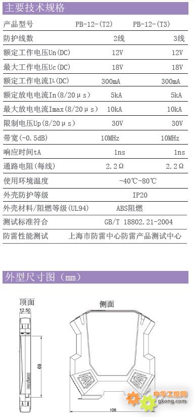 12.5mm寬超薄設計,節省空間通路電阻小、阻抗低高達10kA(8/20μs)抗浪涌能力端子接地,通過DIN35mm導軌安裝適合接近開關、頻率量等信號輸入