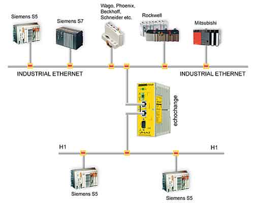 當今,以太網越來越多的被應用到工業領域。目前基于以太網的協議有:ISO(H1)、ISO on TCP(RFC1006)、Modbus on TCP、EtherNet/IP和AB Ethernet。盡管這些協議基本相似并且差別不大,但不同協議之間的通信卻并不那么簡單。Echochange 提供了解決方案:在原來不兼容的協議之間建立聯系,可以對本地和遠程的設備進行配置并且支持多達30個活動連接,同時配置軟件還提供了綜合診斷功能。