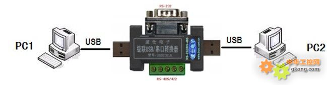USB232GX的串口接收到的數據將同時傳送到PC1和PC2。PC1和PC2發送的數據都將傳送到USB232GX的串口,為了避免數據重疊,PC1和PC2不要同時發送數據。共享可以直插USB口或者使用USB延長線。
