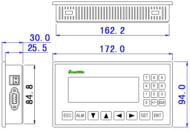 3.7 英寸單色,20個按鍵 對應PLC機種廣泛 具有密碼保護功能,內置時鐘(可選件) 文本精靈,動態(tài)顯示文本 具有報警列表功能,逐行實時顯示當前報警信息 按鍵可被定義成功能鍵 帶背景光STN液晶顯示
