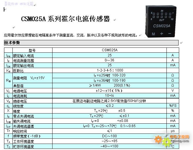 → CSM025A系列霍爾電流傳感器