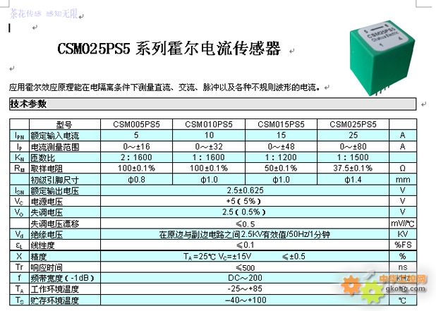 → CSM025PST5系列霍爾電流傳感器