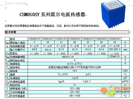 → CSM050SY系列霍爾電流傳感器