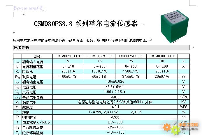 → CSM030PST3.3系列霍爾電流傳感器