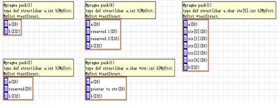 如果C語言的struct中含有一個指針,LabVIEW中的cluster只能用一個U32數值(32位系統上,64位系統上使用U64)來表示指針的地址,而不能將指針所指向的內容放到Cluster中去。如果聲明的是指向struct的指針,才能在LabVIEW中使用cluster與之對應。CLN節點的配置面板中,沒有一個專門命名的“struct”或者“cluster”參數類型,應選擇“Adapt to Type”就可以了。如果參數的類型就是結構而非指針,考慮到C函數參數的壓棧順序,把一個結構體作為參數傳給函數,相當于把結構中每個元素分別作為參數傳遞給函數。圖6為C語言中struct和LabVIEW中cluster的部分匹配圖。