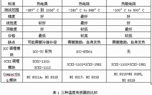 綜上所述,熱電偶價格便宜,而且有很快的響應時間,但是它精度不高而且最不穩定,最不靈敏。熱電偶僅僅是讀取頭和線之間的溫度差異,而RTD和熱敏電阻是讀取絕對溫度值。RTD是可靠性的最佳選擇,而且最為穩定,精度最高。但是它的響應時間太長而且因為它需要一個電流源,因此它有自熱產生。熱敏電阻輸出很快而且相對便宜,但是它易碎而且溫度范圍有限。它同樣需要一個電流源而且比RTD的自熱現象更為嚴重,同時它是非線性的(表1)。