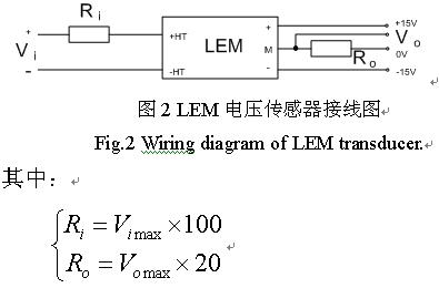 3 LEM傳感器的特點和選型 LEM傳感器具有精度高、實時特性好等特點,廣泛應用于儲能系統、發電系統、輸配電系統、電力機車等多個領域。LEM傳感器品種齊全,不同類型的傳感器具有不同的應用范圍。在有源電力濾波器的應用中,LEM需要選擇交流電流傳感器,為了檢測出負載電流的瞬時值,并且具有高度的實時性,需要選擇實時跟蹤輸出型電流互感器。根據負載電流的范圍,本文選用HSX 20系列電流傳感器,其測量范圍可以達到20A,隔離電壓高達2500V,采用單5V供電,響應時間小于5uS,并且具有尺寸小、測量范圍寬、抗干擾能力強等特點。LEM3需要檢測出APF輸出電流的瞬時值,LEM5需要檢測出直流側電流的瞬時值,用以判別是否有過流現象,因此,LEM3和LEM可以選用與LEM1相同規格的傳感器。LEM2和LEM4用來檢測電壓信號,須選用LEM電壓傳感器。在APF的控制中,需要用到電網電壓的瞬時值,因此LEM2需要檢測出電網電壓的瞬時值。同樣,LEM4需要檢測出直流側電容電壓的瞬時值,以便對直流側電容電壓進行穩壓控制。根據實際電壓等級,LEM2和LEM4可以選用LV100系列的LEM電壓傳感器,檢測電壓范圍為100V至2500V,其檢測誤差小于0.7%,響應時間在20至100uS之間,具有精度非常高、線性度好、溫漂小、響應時間短、帶寬寬、抗干擾能力強等特點。其接線如圖2所示