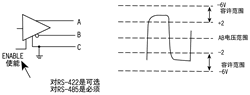 通常情況下,發(fā)送驅動器A、B之間的正電平在+2~+6V,是一個邏輯狀態(tài),負電平在-2~6V,是另一個邏輯狀態(tài)。另有一個信號地C,在RS-485中還有一“使能”端,而在RS-422中這是可用可不用的。“使能”端是用于控制發(fā)送驅動器與傳輸線的切斷與連接。當“使能”端起作用時,發(fā)送驅動器處于高阻狀態(tài),稱作“第三態(tài)”,即它是有別于邏輯“1”與“0”的第三態(tài)。