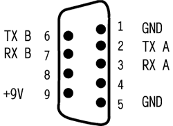RS-422標準全稱是“平衡電壓數字接口電路的電氣特性”,它定義了接口電路的特性。圖5是典型的RS-422四線接口。實際上還有一根信號地線,共5根線。圖4是其DB9連接器引腳定義。由于接收器采用高輸入阻抗和發(fā)送驅動器比RS232更強的驅動能力,故允許在相同傳輸線上連接多個接收節(jié)點,最多可接10個節(jié)點。即一個主設備(Master),其余為從設備(Salve),從設備之間不能通信,所以RS-422支持點對多的雙向通信。接收器輸入阻抗為4k,故發(fā)端最大負載能力是10×4k+100Ω(終接電阻)。RS-422四線接口由于采用單獨的發(fā)送和接收通道,因此不必控制數據方向,各裝置之間任何必須的信號交換均可以按軟件方式(XON/XOFF握手)或硬件方式(一對單獨的雙絞線)。