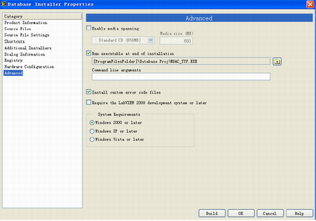 最后要注意的是,在Advanced中還需將mdac_typ.exe文件添加到Run executable at end of installation中,最后點擊“Build”鍵即可(圖9)。