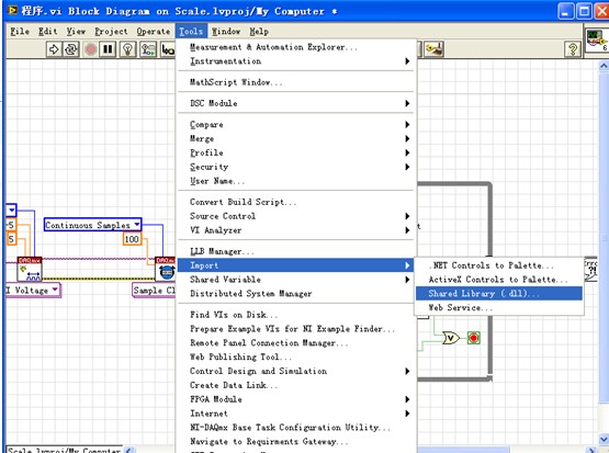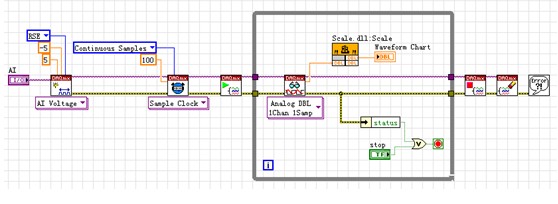剛才介紹了LabVIEW 調用DLL 文件的方法,使用VC 調用LabVIEW 生成的DLL 文件也很簡單。還是以之前生成Scale 的DLL 文件為例,不同的是采集電壓程序使用的是C 語言的例程,但和LavVIEW 實現的功能相同。