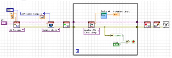 點擊“OK ”,將生成的CLN 的輸入段連接到DAQmx Read.vi ,return type 輸出連接到波形圖表上,即可實現采集值放大10 倍的功能。