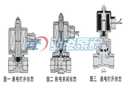 電磁閥的結構原理 一:直動式電磁閥 有常閉型和常開型二種。常閉型斷電時呈關閉狀態,當線圈通電時產生電磁力,使動鐵芯克服彈簧力同靜鐵芯吸合直接開啟閥,介質呈通路;當線圈斷電時電磁力消失,動鐵芯在彈簧力的作用下復位,直接關閉閥口,介質不通。結構簡單,動作可靠,在零壓差和微真空下正常工作。常開型正好相反。如小于φ6流量通徑的電磁閥。(圖一是典型結構圖) 二、分步直動式電磁閥 該閥采用一次開閥和二次開閥連在一體,主閥和導閥分步使電磁力和壓差直接開啟主閥口。當線圈通電時,產生電磁力使動鐵芯 和靜鐵芯吸合,導閥口開啟而導閥口設在主閥口上,且動鐵芯與主閥芯連在一起,此時主閥上腔的壓力通過導閥口卸荷,在壓力差和電磁力的同時作用下使主閥芯向上運動,開啟主閥介質流通。當線圈斷電時電磁力消失,此時動鐵芯在自重和彈簧力的作用下關閉導閥孔,此時介質在平衡孔中進入主閥芯上腔,使上腔壓力升高,此時在彈簧復位和壓力的作用下關閉主閥,介質斷流。結構合理,動作可靠,在零壓差時工作也可靠。如:ZQDF,ZS,2W等。(圖二是典型結構圖) 三、間接先導式電磁閥 該系列電磁閥由先導閥和主閥芯聯系著形成通道組合而成;常閉型在未通電時,呈關閉狀態。當線圈通電時,產生的磁力使動鐵芯和靜鐵芯吸合,導閥口打開,介質流向出口,此時主閥芯上腔壓力減少,低于進口側的壓力,形成壓差克服彈簧阻力而隨之向上運動,達到開啟主閥口的目的,介質流通。當線圈斷電時,磁力消失,動鐵芯在彈簧力作用下復位關閉先導口,此時介質從平衡孔流入,主閥芯上腔壓力增大,并在彈簧力的作用下向下運動,關閉主閥口。常開式原理正好相反。如:SLA,DF(φ15以上口徑),ZCZ等。(圖三是典型結構圖)