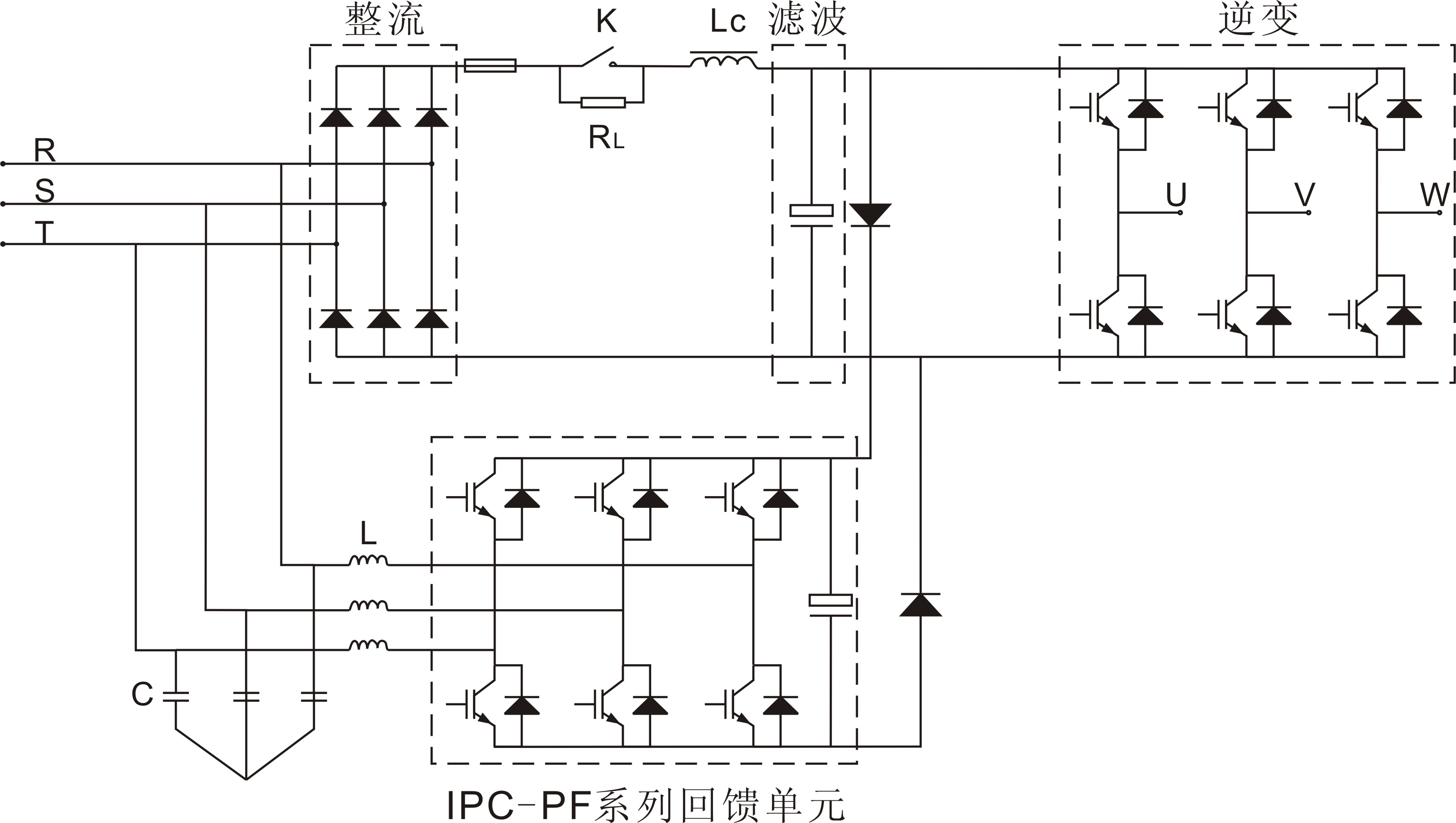 (8)機內(nèi)采用深圳加能回饋單元,回饋能量可直接輸給電網(wǎng),且不受回饋能量大小的限制,適應范圍廣,節(jié)能效果明顯,系統(tǒng)可以實現(xiàn)四象限運行;