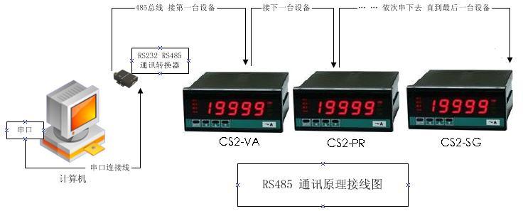 計算機通過 RS232 RS485轉換器,依次連接 多臺 RS485設備(通訊儀表),采用輪詢的方式,對總線上的設備輪流進行通訊。