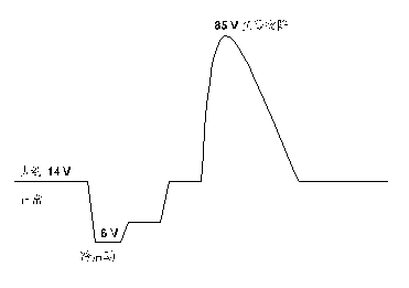 如12 V電池電源線的電壓瞬變范圍(VIN)非常寬廣,小至6V,,大至87V。典型的車載電力系統的工作電壓范圍往往只有在9V ~ 16 V。引擎關閉時電池的正常額定電壓為12 V,啟動時為14.4 V。但是,這個范圍在瞬變狀態時很容易擴大到80 V峰值以上。