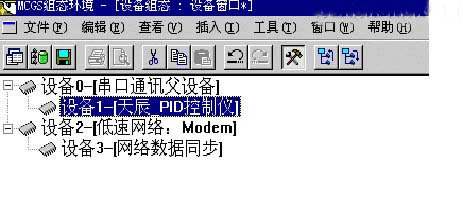 遠程監控組態: 需要在兩臺計算機(遠程端和本地端)上進行組態,且在遠程計算機正常運行時才能在本地計算機上進行遠程監控。 本地端工程組態: ● 創建一個新工程,并保存為 “遠程監控本地端.mcg” 文件; ● 在設備窗口中加入設備,如圖所示。