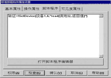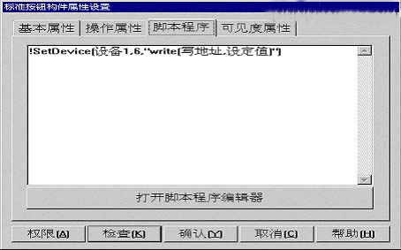 在窗口中新建兩個按鈕,分別命名為“write”和”read”,在按鈕的腳本程序中寫入操作設備的設備命令。如下圖所示。