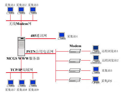 這一類系統的典型代表有:石化行業的各種氣、油計量系統,油罐庫區監測系統,化工廠大型裝置監測系統,水泥廠網絡監控系統,電能計量網絡管理系統,酒廠生產網絡監控系統,煤氣、自來水的計量監控網絡系統,以及各種廠級的企業生產信息網絡監控系統。 MCGS組態軟件提供了在各個服務器節點上運行應用程序不同部分的能力,以分散整個系統的關鍵部件,使系統不會因為單臺服務器的失效而完全停止服務。同時也分散了整個系統的負荷,因而,能夠處理數量更大的數據采集信息。 MCGS組態軟件允許無限制的客戶機訪問數據服務器以獲取生產數據,客戶機可以根據自己的需要隨時的啟動或退出。 MCGS組態軟件允許建立物理位置上極度分散的系統來搜集大地理范圍內的生產數據,可以通過基于TCP/IP的網絡,485總線,Modem,靈活的電話撥號策略,微波網絡,光纖網絡,甚至數傳無線電臺構造大型數據采集系統,這種系統尤其適用于礦山,油田,水處理等地理位置跨越很大的系統。