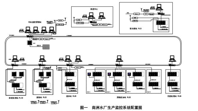 南洲水廠廠內(nèi)監(jiān)控系統(tǒng)主網(wǎng)采用以光纖為傳輸介質(zhì)、遵循 TCP/IP 協(xié)議的(10M/100M,環(huán)網(wǎng))工業(yè)以太網(wǎng)為主干網(wǎng)絡(luò),現(xiàn)場(chǎng)主要設(shè)備采用獨(dú)立 SLC 控制,采用 DeviceNet 等現(xiàn)場(chǎng)總線將其聯(lián)接構(gòu)成現(xiàn)場(chǎng)控制層; 水質(zhì)儀表、 電類計(jì)量?jī)x表、 高壓綜合繼電保護(hù)及測(cè)量等設(shè)備通過(guò) Modbus現(xiàn)場(chǎng)總線構(gòu)成現(xiàn)場(chǎng)檢測(cè)網(wǎng)絡(luò),并與主控 PLC 連網(wǎng);主控 PLC 通過(guò)交換機(jī)連于全廠主網(wǎng)。