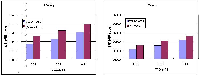 圖4顯示了同樣輸出扭矩的橫河DD馬達與NSK DD馬達旋轉180度與旋轉90度的最小時間,可見采用永磁定子的橫河DD馬達在剛性、速度上都要高于NSK。也就是這小小的提高決定了最終生產周期的縮短。