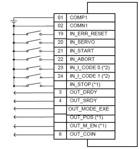 GIII驅(qū)動器有 12個輸入點可以使用,其邏輯與定義可以任意改變,功能包括 servo-on、start、stop、連續(xù)運行、輸入點選擇等。這里的應(yīng)用要使用輸入點選擇,即 CODE_1、CODE_2、等,根據(jù)需要執(zhí)行的table號碼,比如設(shè)定的 004號table 執(zhí)行的命令是正向旋轉(zhuǎn) 90度,只要設(shè)定inpit1、input2、input3,3個輸入點就可以對 table 選擇進行編碼,004對應(yīng)的是1 0 0,即input3 為高電平,其它為低電平,就旋轉(zhuǎn)了 004號 table。輸入點 servo-on、start、stop也是必不可少的,servo-on之后然后start,這樣就會完成正向 90 度的運行。