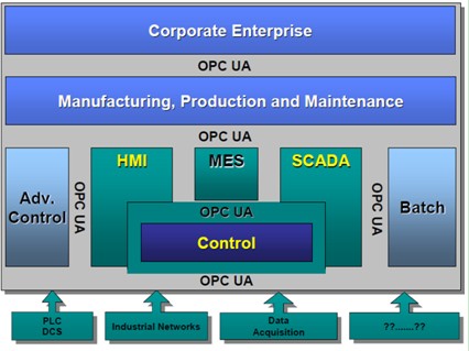 (1)擴展了OPC的應用平臺,把過去只在Windows平臺上的OPC技術拓展到Linux和Unix平臺。開放的基于Internet的WebService的服務架構(SOA)和基于Internet的異常靈活的數據交換系統,為構建跨地域的數據采集系統提供了有力的技術支撐。基于OPC UA標準的產品可更好地實現工廠級的數據采集和管理,從PLC、DCS等現場設備,到HMI、SCADA,再到生產制造系統,再到企業上層管理軟件,都可以通過OPC UA標準,統一進行溝通。