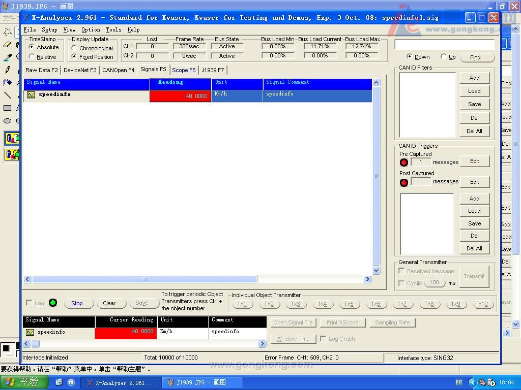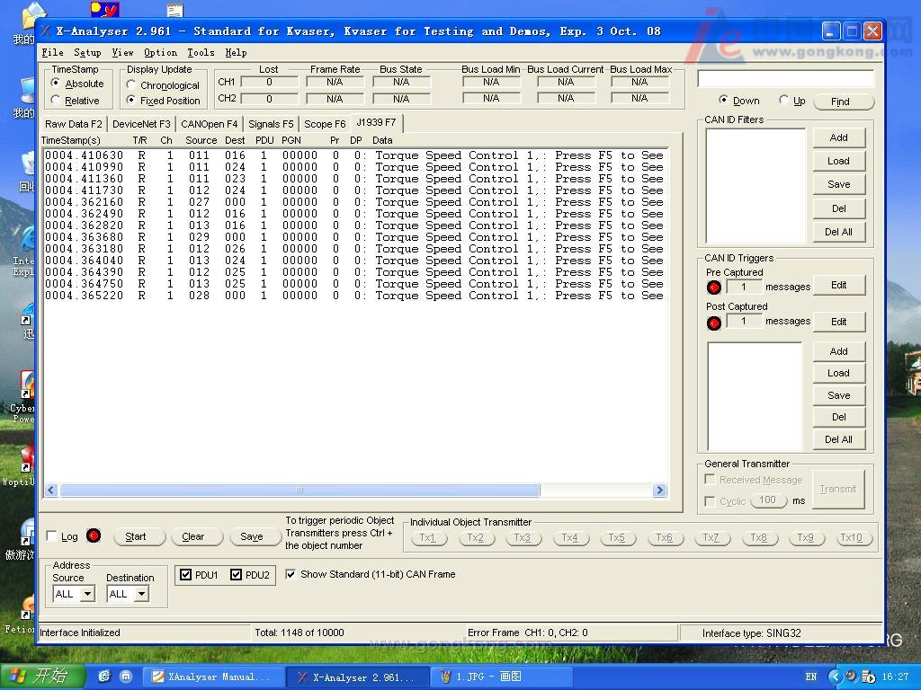 五、 廣州智維J1939總線某ECU單元監測信號波形X-Analyser軟件顯示界面