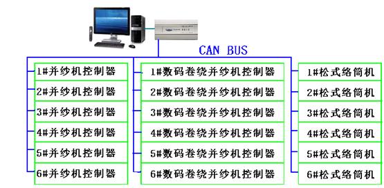 筆者根據ECCT集成的CAN總線功能,在紡織機械上的得到了成功的應用,現介紹如下:其CAN系統總體結構圖如下: