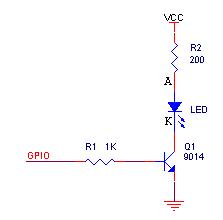 ** PIN20 為可選擇信號線,用戶可以選擇用作地址總線A4,此時通常用于和ETA906 配合使用,連接TFT 類的LCD;用戶還可以選擇作為大多數單色LCD的背光控制,背光電壓在+4.3V左右,常用的背光控制電路如圖1。圖1中通過一位GPIO控制背光的打開與關閉,LED的A,K極對應于LCD面板上背光的陽極和陰極。
