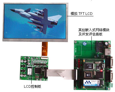 在需要進行彩色LCD顯示的場合,我們建議對成本敏感的客戶選用模擬接口的TFT LCD,這樣既可以達到不錯的彩色顯示效果,又可以相對于數字LCD節約一大筆成本。對于模擬接口的TFT LCD,我們選用第三方的LCD控制器直接與嵌入式主板的LCD接口連接,達到彩色輸出的目的。