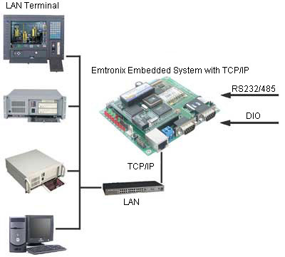 在信息化發(fā)展的大潮中,在工業(yè)自動化、電力設(shè)備、通訊管理、智能終端、智能小區(qū)等等應(yīng)用里,由于其具有速度快、通用性好、擴(kuò)展性強(qiáng)等等優(yōu)點(diǎn),以太網(wǎng)絡(luò)日漸成為設(shè)備之間進(jìn)行通訊的主要方式。英創(chuàng)DOS嵌入式網(wǎng)絡(luò)模塊不僅提供了以太網(wǎng)絡(luò)的物理接口,還提供了配套的商業(yè)級TCP/IP軟件協(xié)議庫和相關(guān)例程,是用戶進(jìn)行嵌入式以太網(wǎng)絡(luò)終端設(shè)備開發(fā)的價(jià)廉物美的選擇。