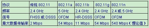 無線網卡802.11 a/b/g/n有什么區別