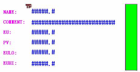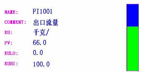 下面,我們通過一個簡單的例子來說明圖形模板對象的使用方法。此例子是使用一幅簡單的畫面來顯示點的NAME、DESC、EU、PV、EULO、EUHI六個基本參數。