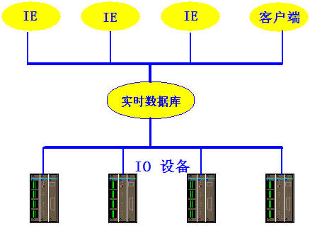 當前組態軟件在工業控制中得到了日益廣泛的應用。組態軟件依據自身的過程數據庫,下連各種硬件設備,并通過動態人機界面可以將采集處理的數據展現給用戶,或者傳遞給其他應用程序。其結構如圖所示: