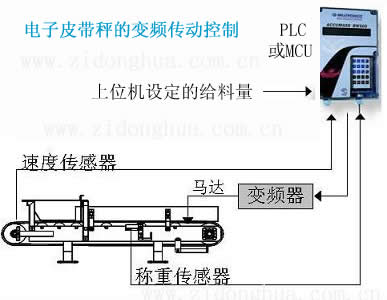 稱重給料機將經過皮帶上的物料,通過稱重秤架下的稱重傳感器進行檢測重量,以確定皮帶上的物料重量;裝在尾部滾筒或旋轉設備上的數字式測速傳感器,連續測量給料速度,該速度傳感器的脈沖輸出正比于皮帶速度;速度信號與重量信號一起送入皮帶給料機控制器,產生并顯示累計量/瞬時流量。給料控制器將該流量與設定流量進行比較,由控制器輸出信號控制變頻器調速,實現定量給料的要求(如圖1)。 可由上位PC機設定各種相關參數,并與PLC實現系統的自動控制。它可以采用兩種運行方式:自動方式和半自動/手動方式。