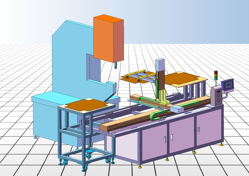 銀光VR-15A1由三軸機械手組合而成。可實現自動上料和手工上料的切換。三軸運動控制實現鉚釘位置的預先輸入,可以通過CAD格式的文檔輸入,確定工作的點位,機械手和鉚釘機協調配合作業,直到將所有的鉚釘位置全部工作完成。并實現自動下料功能。當下料工作臺料滿時,機器人提示人工取走。