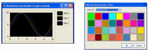 Measurement Studio以前版本中,在使用諸如Windows Forms and Web Forms scatter、waveform and complex graphs等時,若要添加一條新的曲線,系統默認顏色都是綠色,需手動更改。但在Measurement Studio 2009中,系統會自動產生新的顏色,同時也可以通過PlotLineColorGenerator這個屬性去自定義一個新的顏色。