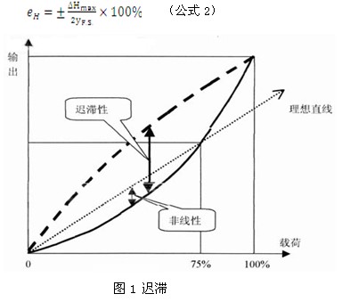 遲滯是反應傳感器在輸入量增大和減小的行程過程中輸出和輸入曲線的不重合程度的指標(圖2)。通常用正反行程輸出的最大差值 計算,有: