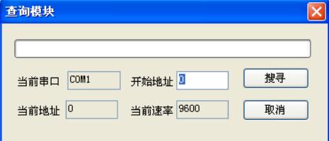 您通過對串口進行配置后,就可以搜索模塊了。點擊工具條上的 按鈕 ,將彈出圖 3 所示的搜索對話框。在對話框里,顯示了當前搜索的串口及串口的波特率,同時,您可以更改“開始地址”設置搜索的起始地址。