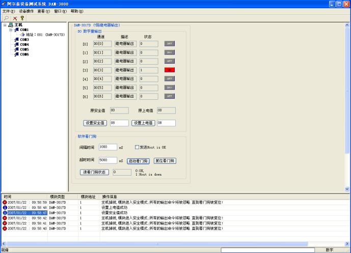 當搜索到模塊時,在左側的樹型視圖中,將在相應的串口下添加模塊項,其中包含了模塊的地址,以及模塊的類型。以 DAM-3017D 為例,此模塊接在串口 1 中,地址為 1,模塊類型為 DAM-3017D。在您選擇了此模塊后,將顯示圖 4 所示了 DAM-3017D F操作界面。