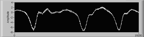 圖4、5為從監控中心中的上位機軟件LabView[4]中截取的橋上過車時的橋梁撓度波形圖。.