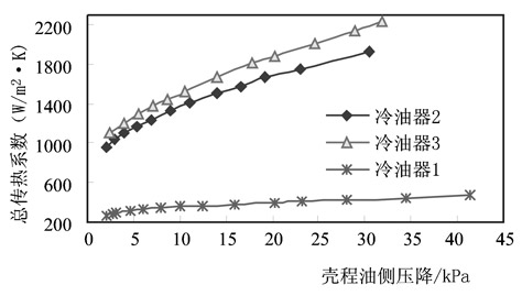 圖8 總傳熱系數隨油側壓降的變化