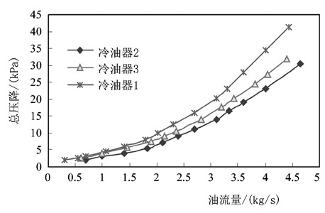 圖6殼側壓降隨油流量的變化