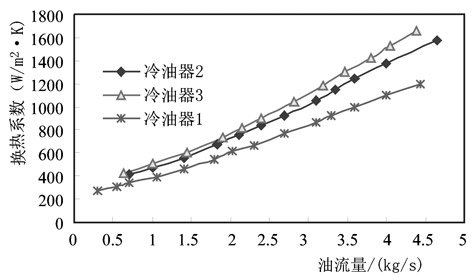 圖9 換熱系數隨油流量的變化