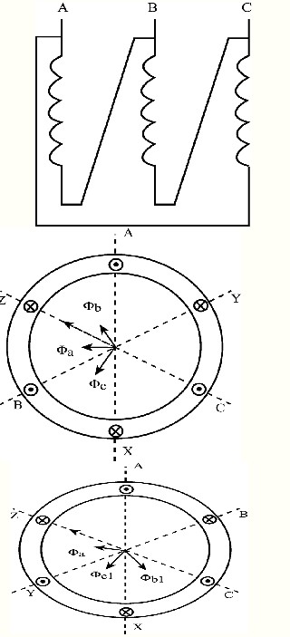 由以上兩個表格可以看出,當三相繞組連接正確時,在任意兩端子之間施加一個電壓(表中帶下劃線的數字為外部施加電壓的數值),分別測量第三個端子和這兩個端子之中每一個端子之間的電壓,你會發現這兩個電壓基本是相等的;而如果其中一相接反,你會發現:如果接反相的繞組是與另一個繞組串聯共同來承受外部施加電壓時,分別測量第三個端子和這兩個外施電壓端子中每一個之間的電壓,這兩個電壓的壓差明顯增大,約為外施電壓的5%~10%( , ),而且與接反繞組兩端直接連接的兩個端子的測量電壓減小。從以上我們也可以看出測量Δ連接繞組與Y連接繞組的不同:當在兩個端子之間施加電壓時,Y連接只有兩個繞組中流過電流,繞組無論接反與否,電壓都將在二者之間平均分配,只是當有一個繞組接反時,第三個繞組中將感應出電勢,從而影響測量結果;而當在Δ連接繞組的兩個端子之間施加電壓時,三個繞組中都將流過電流,三個繞組之間將相互影響,但是,只有當接反的繞組和另外一個繞組串聯跨接在外加電源的兩個端子之間時,才會影響到這兩個繞組之間的電壓分布,使兩個繞組間的電壓分布不均勻性增大。