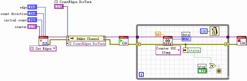 需要注意的是在使用了DAQmx Connect Terminals連接端子后,資源就會被一直占用,所以要在程序結束乊前使用DAQmx Disonnect Terminals斷開端子的連接。這就是前述的顯式連接方式。 如下圖所示,將PFI10(計數器0的AUX端口)連接到PFI1(可以是任一空閑的PFI端口)上,然后在前面板當中選擇外部控制計數方向。