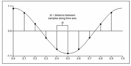 這個數列被稱為信號 x(t) 的數字化顯示或者采樣顯示。注意這個數列中僅僅用下標變量編制索引,而不含有任何關于采樣率(或Δ t )的信息。所以如果只知道該信號的采樣值,并不能知道它的采樣率,缺少了時間尺度,也不可能知道信號 x(t) 的頻率。